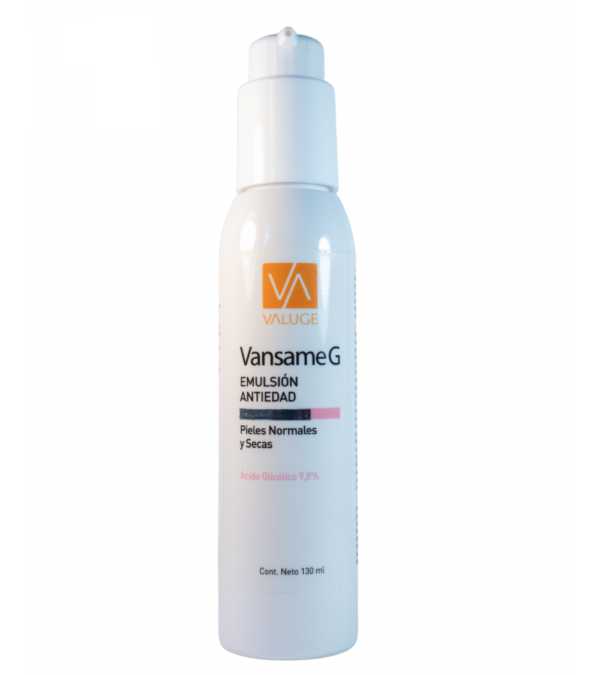 PROPIEDADES: VANSAME G es una emulsión suavizante, especialmente formulada para ser utilizada en pieles deshidratadas y/o seborreicas. Elimina la grasitud que se genera en la piel oleosa, tendiente a la formación de puntos negros y acné. Con el paso del tiempo, la piel pierde gradualmente la capacidad para retener la humedad. VANSAME G está especialmente formulada para retener la humedad perdida de la piel, logrando la humectación requerida en aquellas pieles secas o con problemas patológicos. El ácido Glicólico, un alfa hidroxiácido (AHA), contribuye a renovar la capacidad natural de la piel para conservar su estado de hidratación. VANSAME G se absorbe rápidamente, sin dejar restos oleosos, provocando una agradable sensación de suavidad e hidratación de la piel.